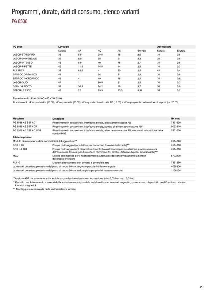 * Versione ADP necessaria se è disponibile acqua demineralizzata non in pressione (min. 0,05 bar, max. 0,3 bar).