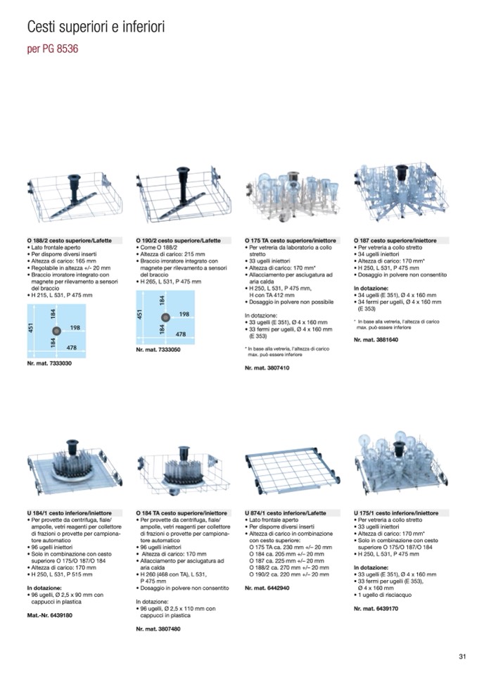 O 184 TA cesto superiore/iniettore