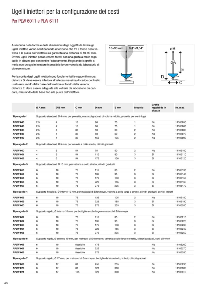 Per la scelta degli ugelli iniettori sono fondamentali le seguenti misure: