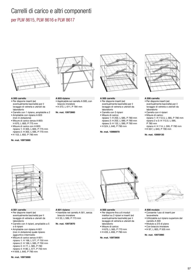 • Inseribile nel carrello A 501, senza