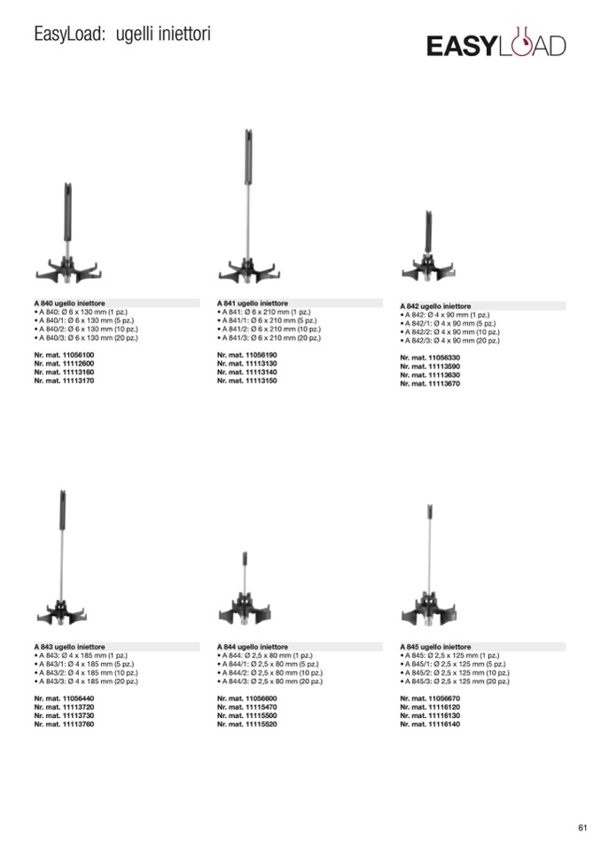• A 840/1: Ø 6 x 130 mm (5 pz.)