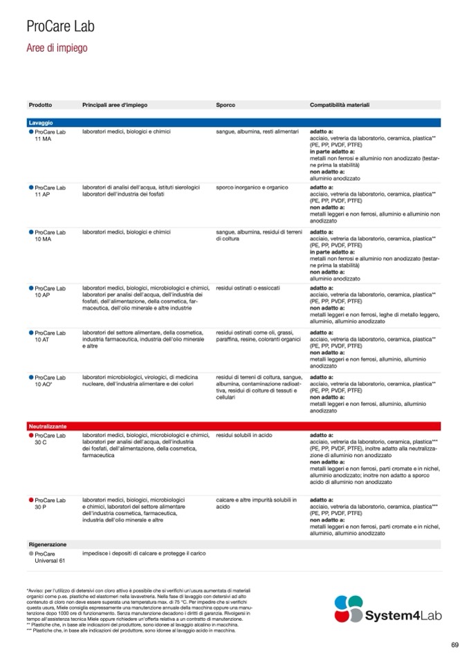 organici come p.es. plastiche ed elastomeri nella lavavetreria. Nella fase di lavaggio con detersivi ad alto