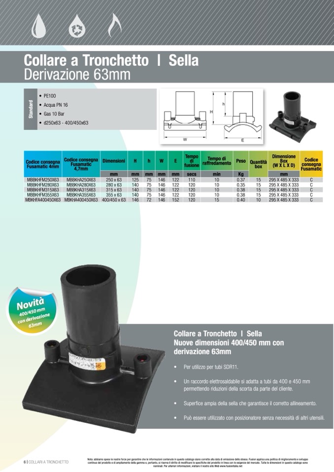 • Un raccordo elettrosaldabile si adatta a tubi da 400 e 450 mm