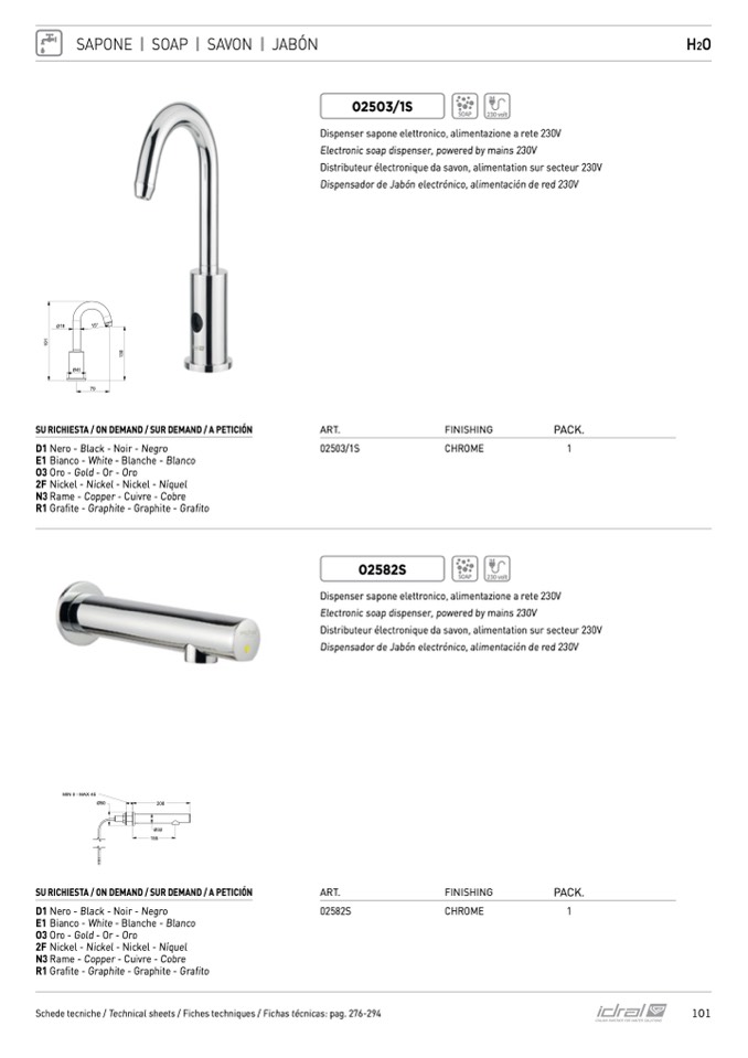 Schede tecniche / Technical sheets / Fiches techniques / Fichas técnicas: pag. 276-294