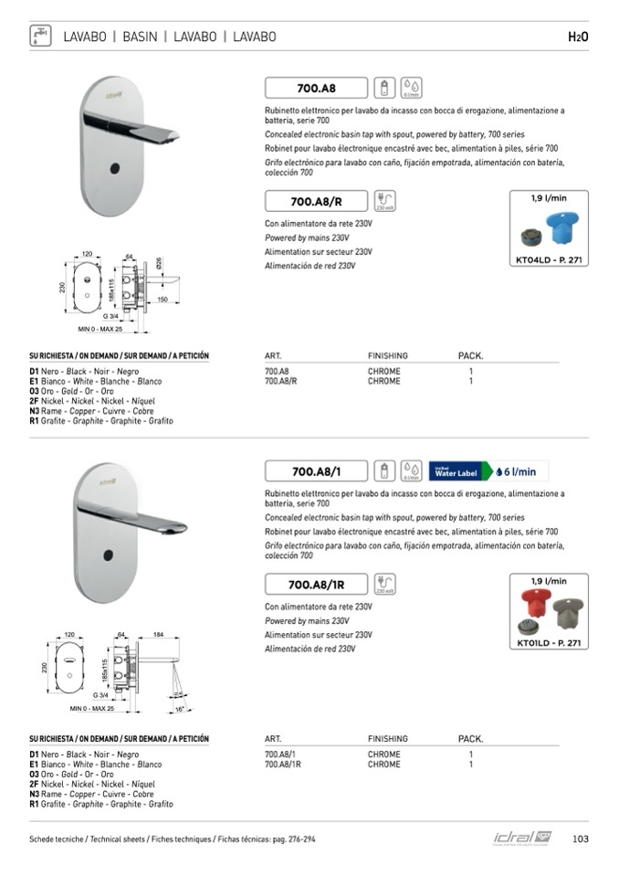 Schede tecniche / Technical sheets / Fiches techniques / Fichas técnicas: pag. 276-294