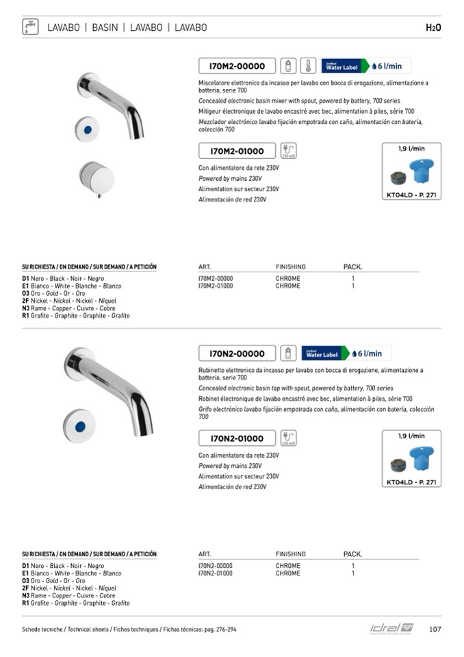 Schede tecniche / Technical sheets / Fiches techniques / Fichas técnicas: pag. 276-294