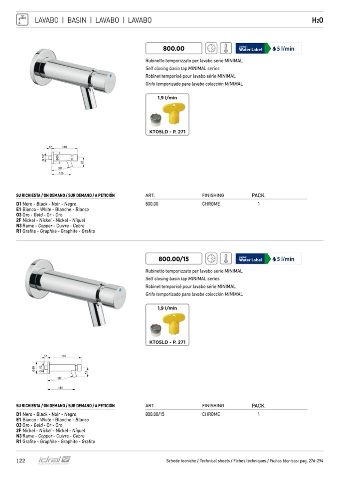 Grifo temporizado para lavabo colección MINIMAL