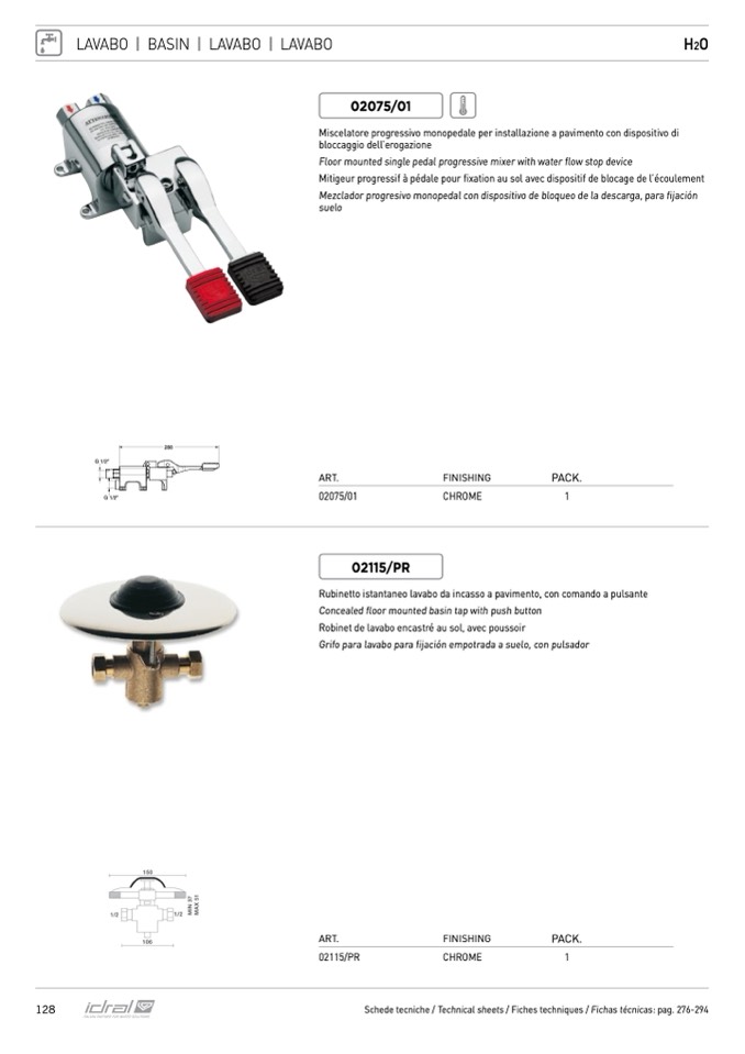 Rubinetto istantaneo lavabo da incasso a pavimento, con comando a pulsante