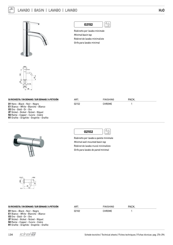 Schede tecniche / Technical sheets / Fiches techniques / Fichas técnicas: pag. 276-294