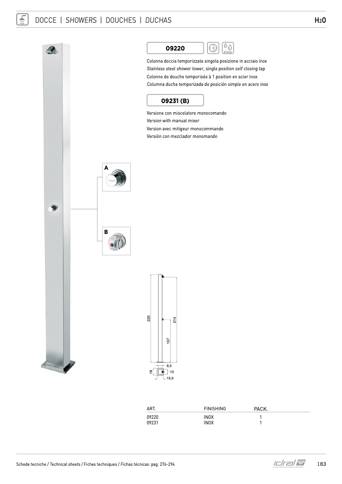 Schede tecniche / Technical sheets / Fiches techniques / Fichas técnicas: pag. 276-294
