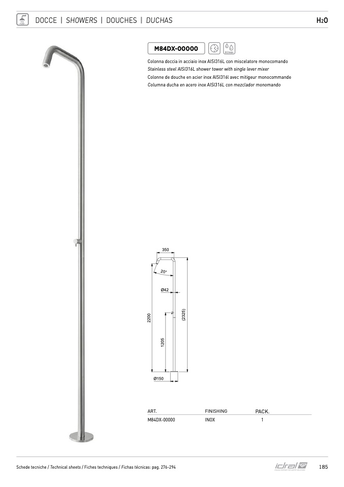 Colonna doccia in acciaio inox AISI316L con miscelatore monocomando