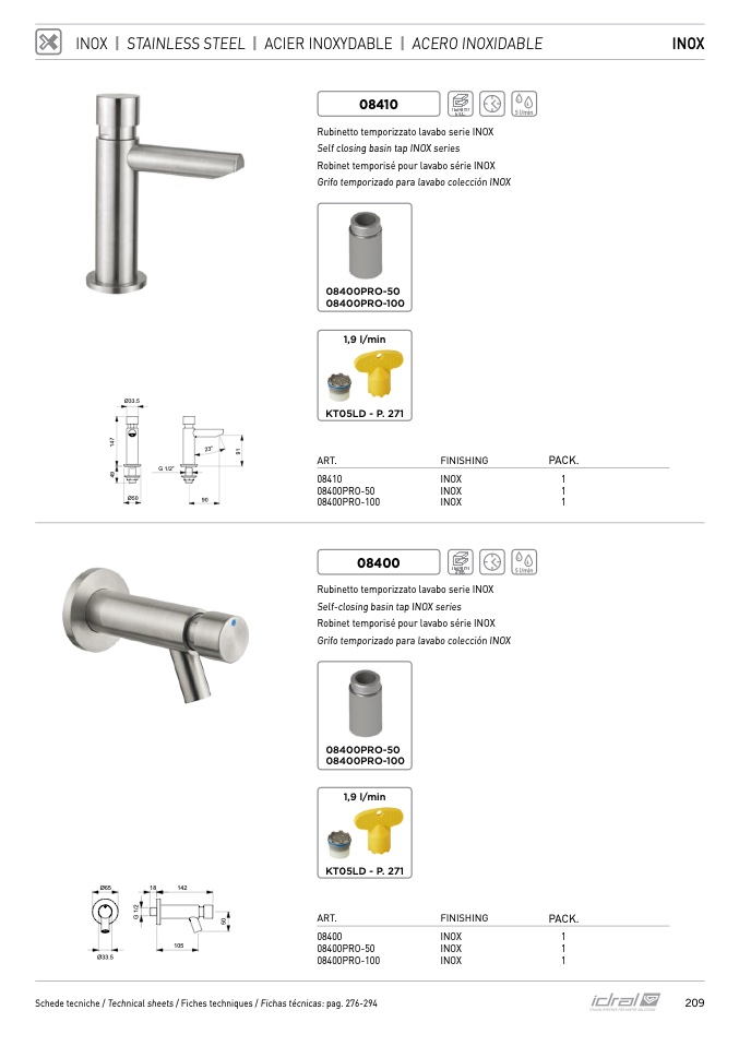 Schede tecniche / Technical sheets / Fiches techniques / Fichas técnicas: pag. 276-294