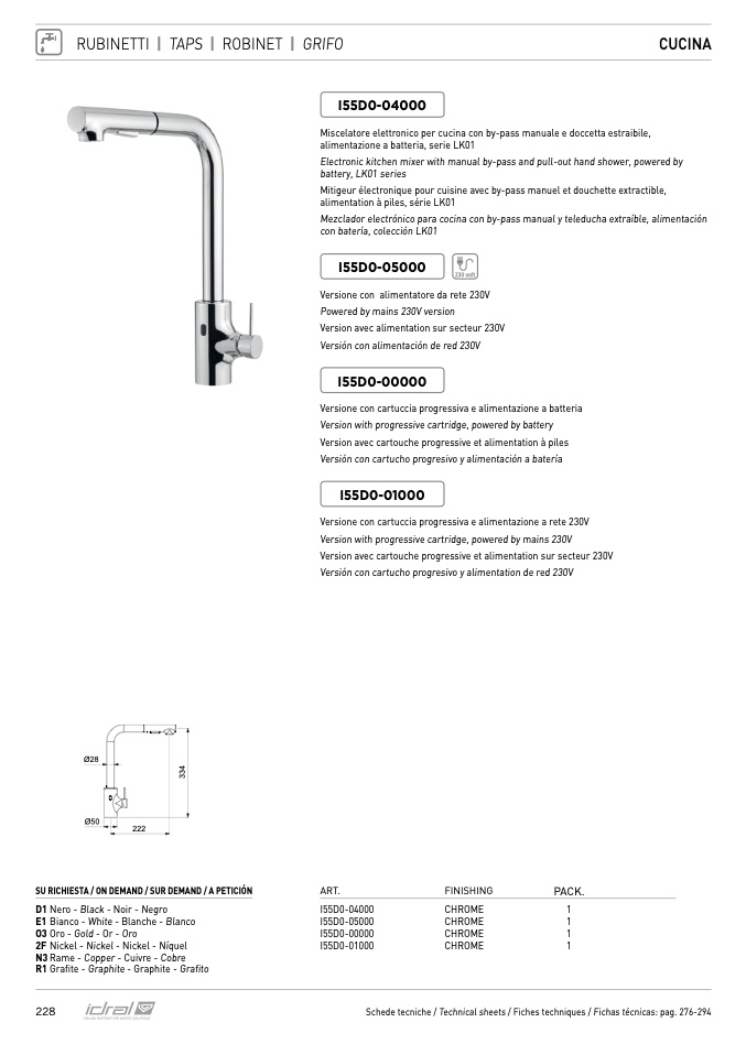 Schede tecniche / Technical sheets / Fiches techniques / Fichas técnicas: pag. 276-294