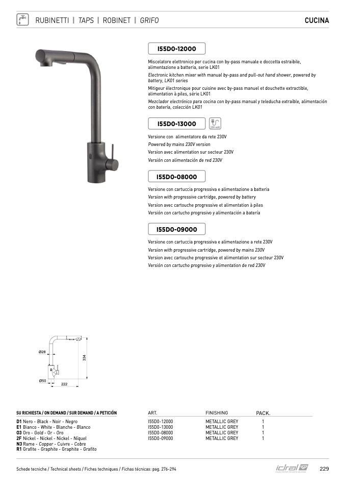 Schede tecniche / Technical sheets / Fiches techniques / Fichas técnicas: pag. 276-294