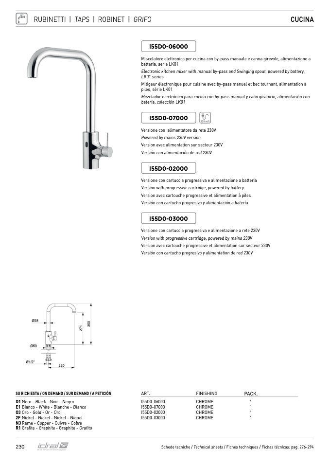 Schede tecniche / Technical sheets / Fiches techniques / Fichas técnicas: pag. 276-294