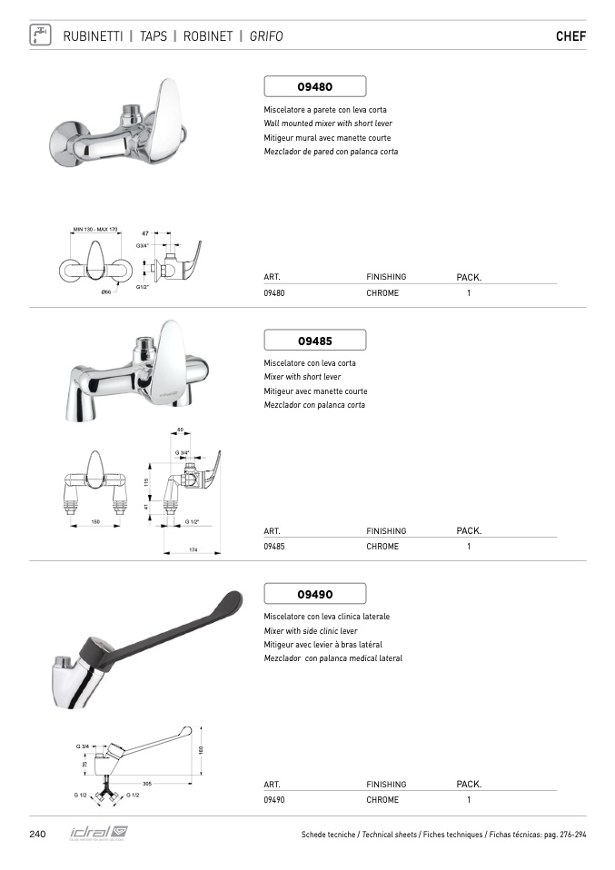 Schede tecniche / Technical sheets / Fiches techniques / Fichas técnicas: pag. 276-294