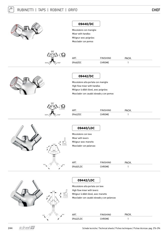 Schede tecniche / Technical sheets / Fiches techniques / Fichas técnicas: pag. 276-294
