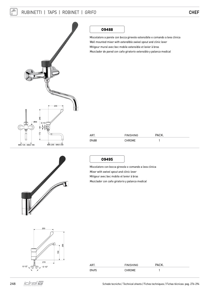 Schede tecniche / Technical sheets / Fiches techniques / Fichas técnicas: pag. 276-294