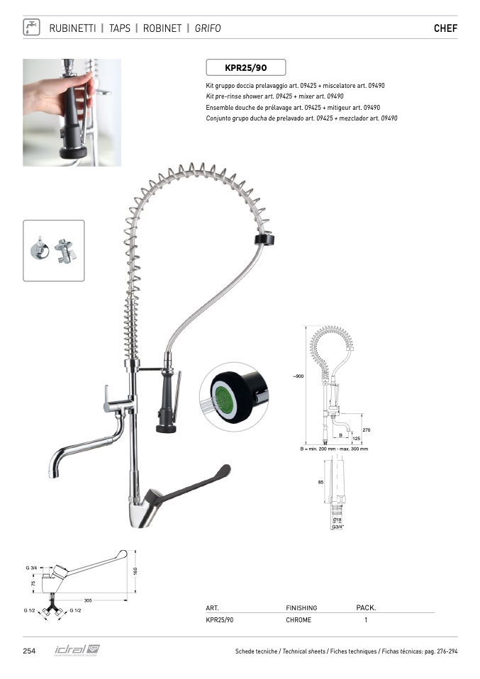 Ensemble douche de prélavage art. 09425 + mitigeur art. 09490