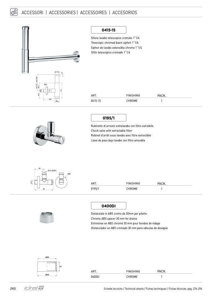 Schede tecniche / Technical sheets / Fiches techniques / Fichas técnicas: pag. 276-294