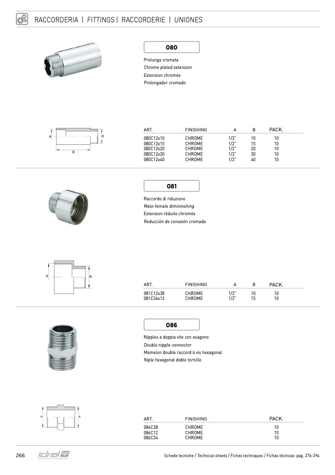 Schede tecniche / Technical sheets / Fiches techniques / Fichas técnicas: pag. 276-294