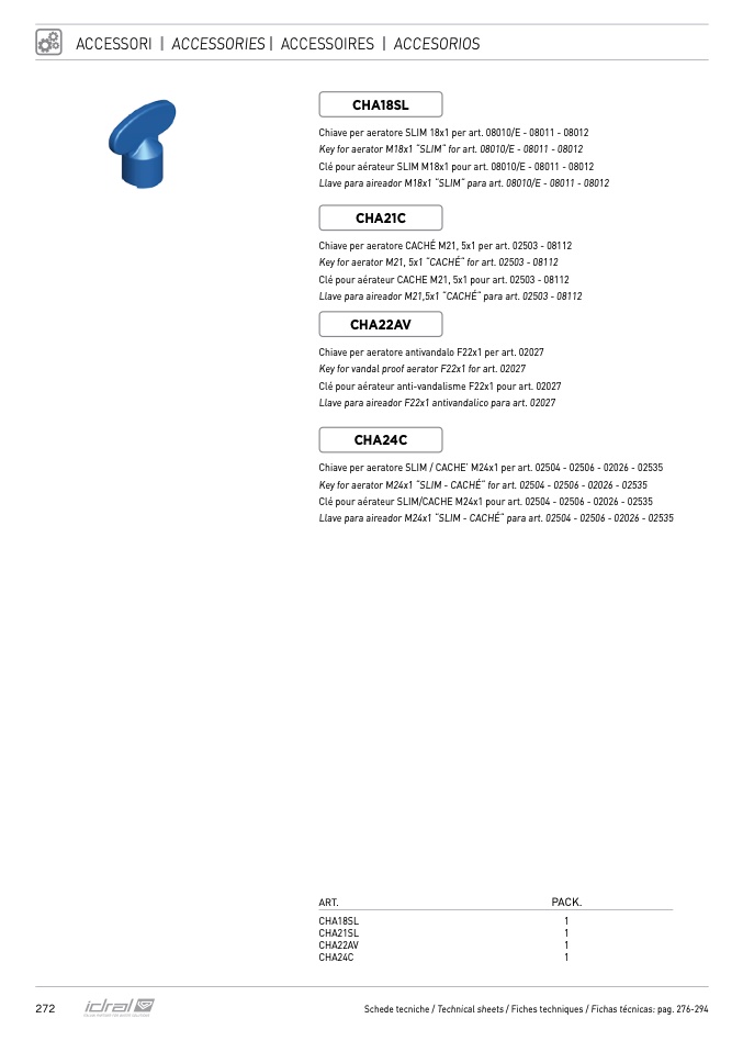 Schede tecniche / Technical sheets / Fiches techniques / Fichas técnicas: pag. 276-294