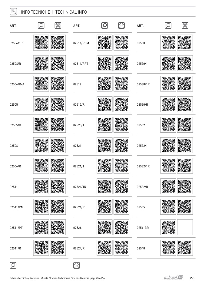 Schede tecniche / Technical sheets / Fiches techniques / Fichas técnicas: pag. 276-294
