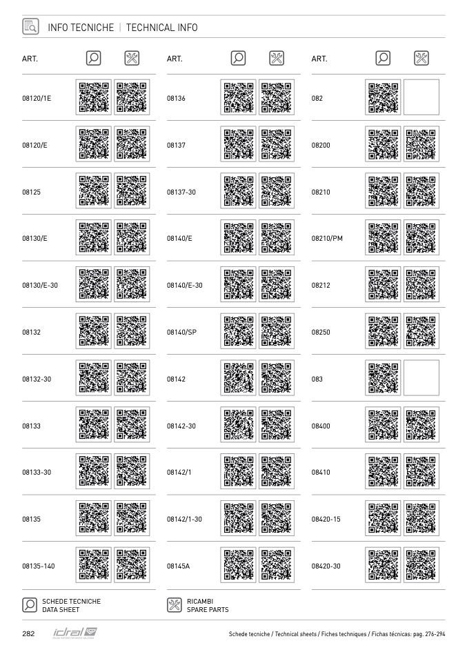 Schede tecniche / Technical sheets / Fiches techniques / Fichas técnicas: pag. 276-294