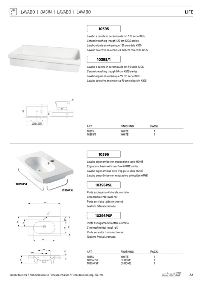 Schede tecniche / Technical sheets / Fiches techniques / Fichas técnicas: pag. 276-294