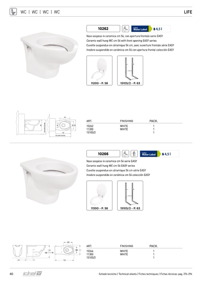 Inodoro suspendido en cerámica cm 54 colección EASY
