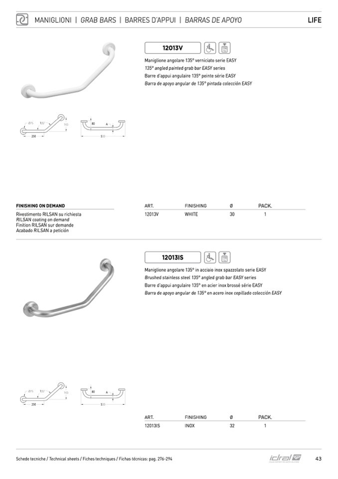 Barra de apoyo angular de 135° en acero inox cepillado colección EASY