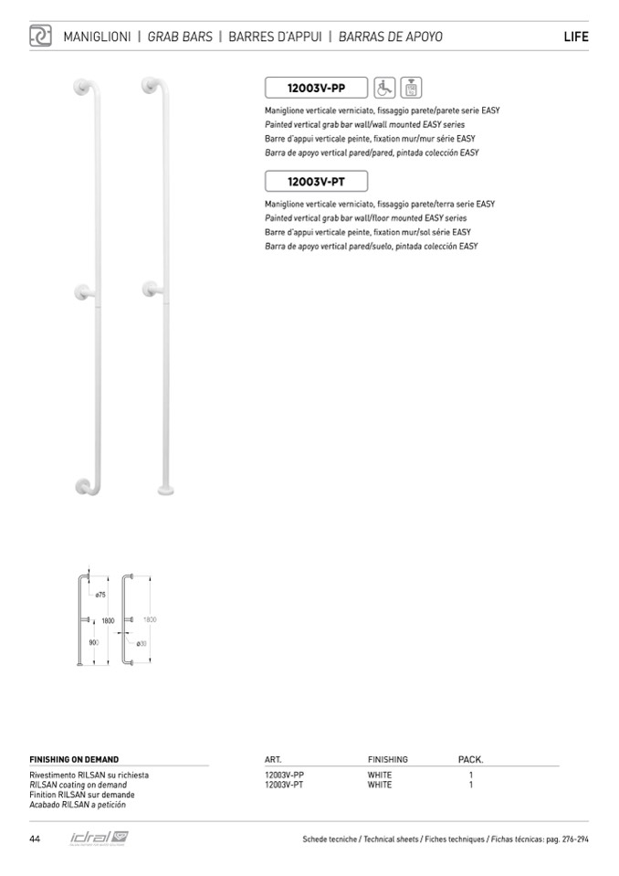 Painted vertical grab bar wall/floor mounted EASY series