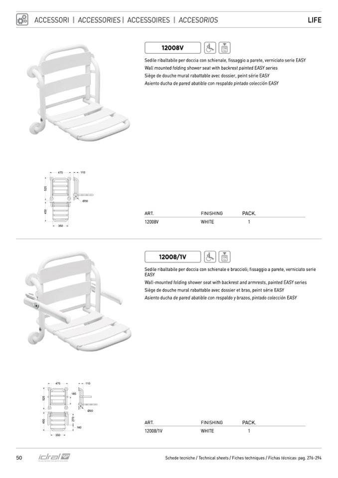 Sedile ribaltabile per doccia con schienale, fissaggio a parete, verniciato serie EASY