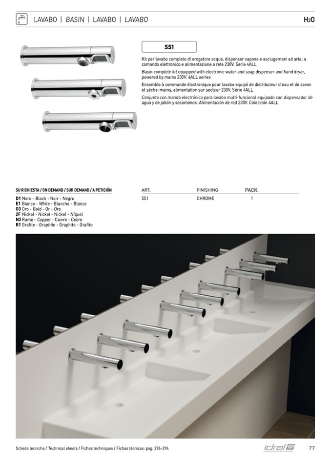 agua y de jabón y secamános. Alimentación de red 230V. Colección 4ALL