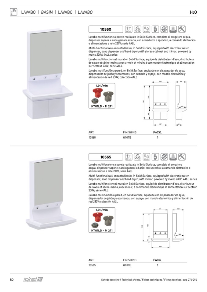Schede tecniche / Technical sheets / Fiches techniques / Fichas técnicas: pag. 276-294