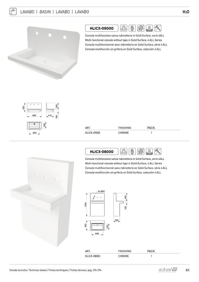 Schede tecniche / Technical sheets / Fiches techniques / Fichas técnicas: pag. 276-294