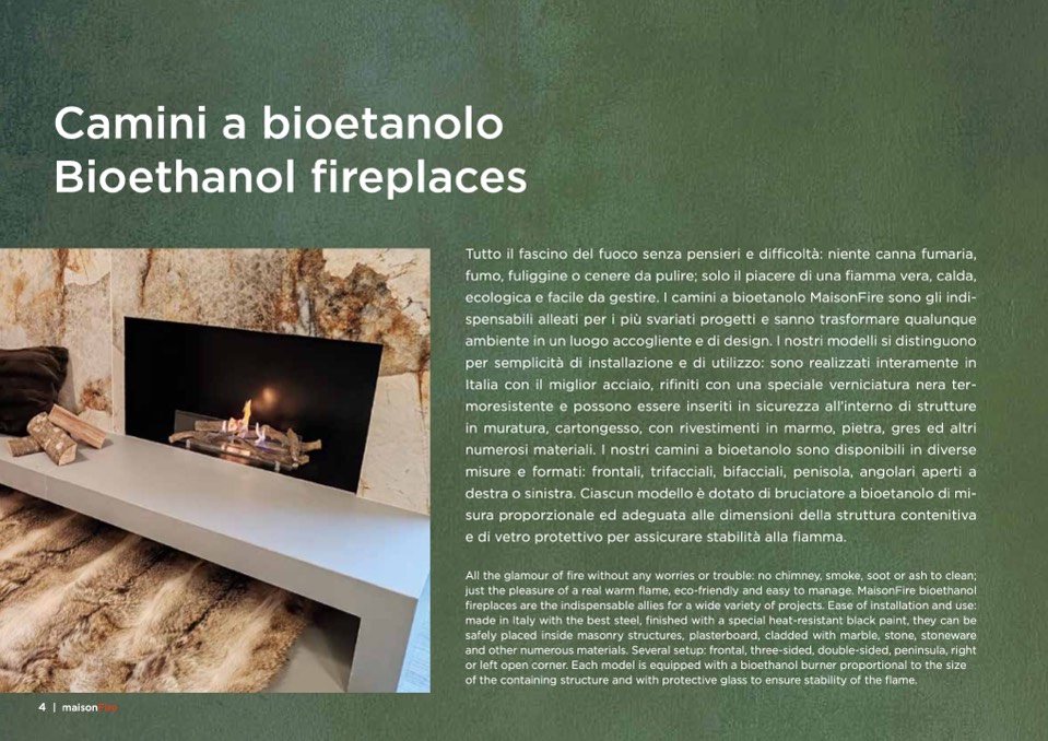 flame, eco-friendly and easy to manage. MaisonFire bioethanol