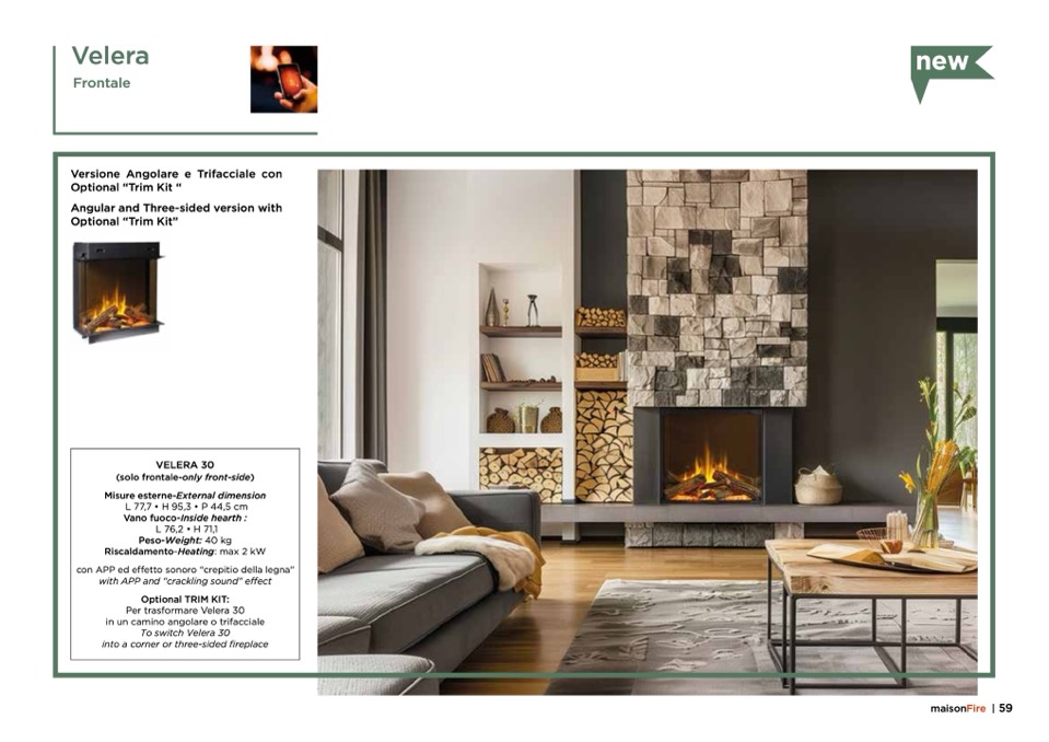 con APP ed effetto sonoro “crepitio della legna”