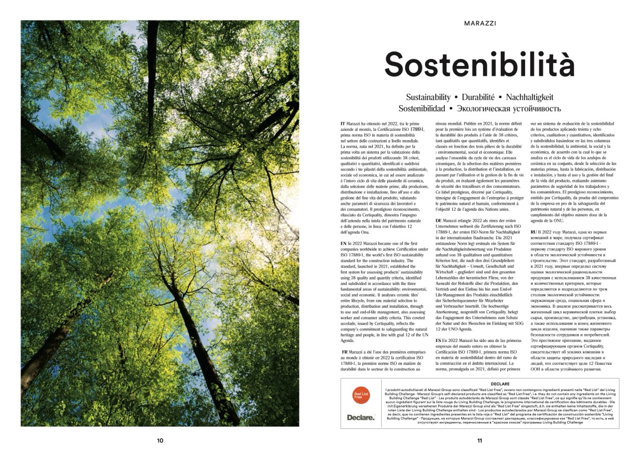 Building Challenge · Marazzi Group’s self-declared products are classified as “Red List Free”, i.e. they do not contain any ingredients on the Living