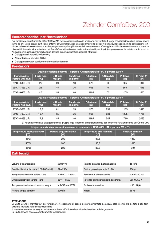 (*) Potenza indicativa da aggiungere al gruppo frigo in fase di dimensionamento per il corretto funzionamento del ComfoDew
