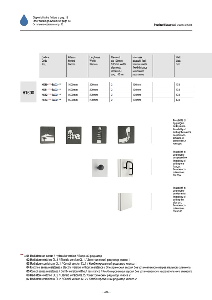 02 Radiatore elettrico CL.1 / Electric version CL.1 / лектрический радиатор класса 1