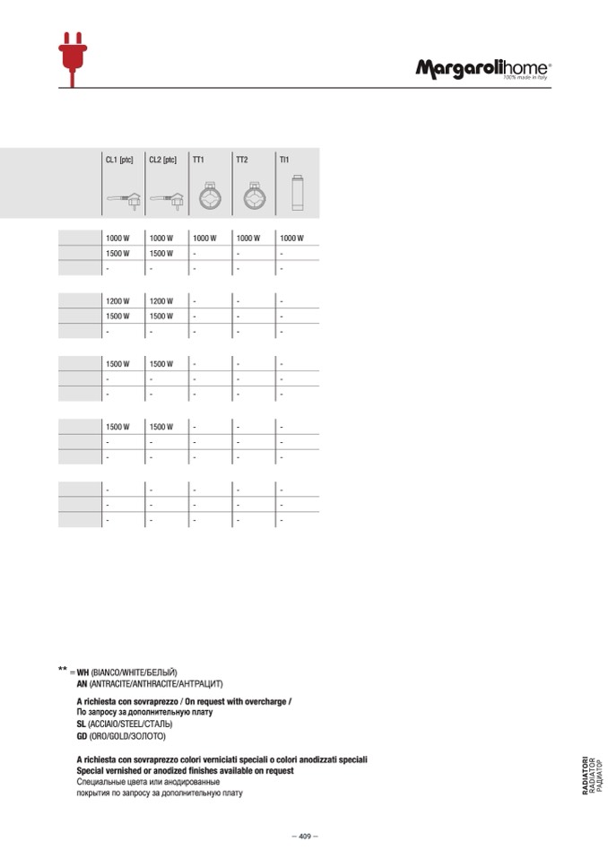 A richiesta con sovraprezzo / On request with overcharge /