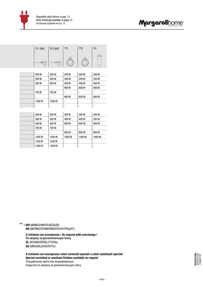 Other finishings available at page 13