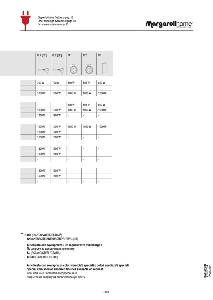 Other finishings available at page 13