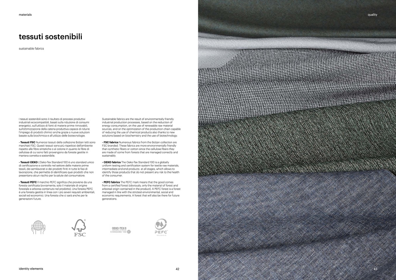 - Tessuti FSC Numerosi tessuti della collezione Bolzan letti sono