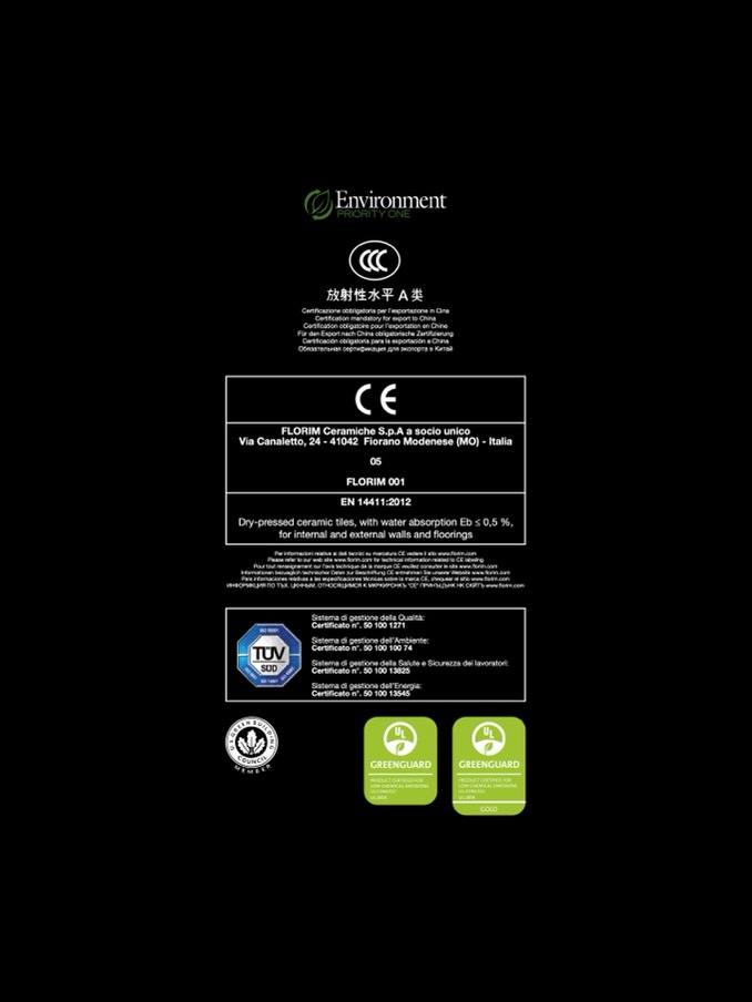 Informationen bezueglich technischer Daten zur Beschriftung CE entnehmen Sie unserer Website www.florim.com