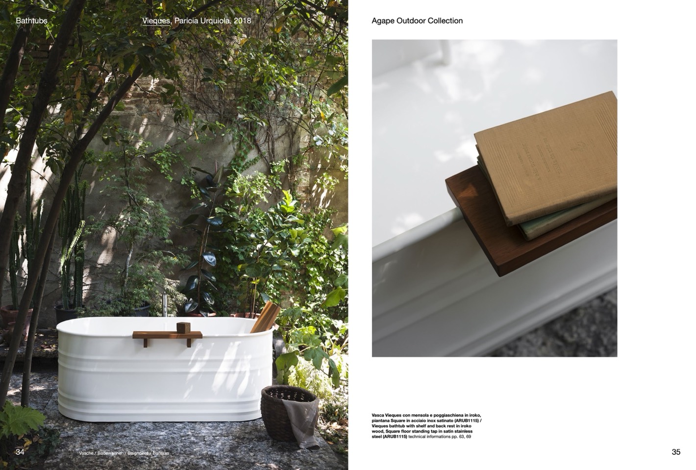 Vasca Vieques con mensola e poggiaschiena in iroko,