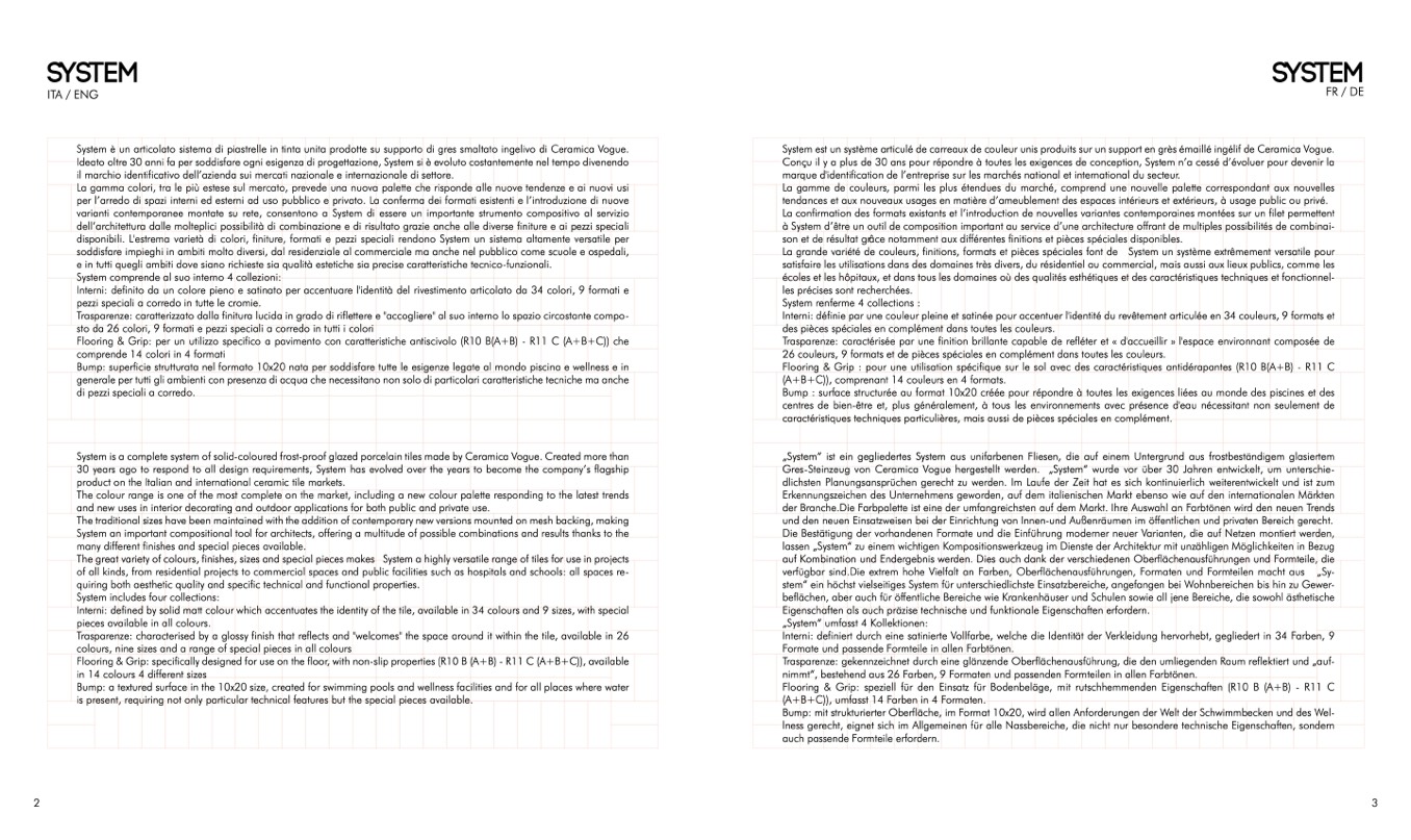 Gres-Steinzeug von Ceramica Vogue hergestellt werden. „System“ wurde vor über 30 Jahren entwickelt, um unterschie-