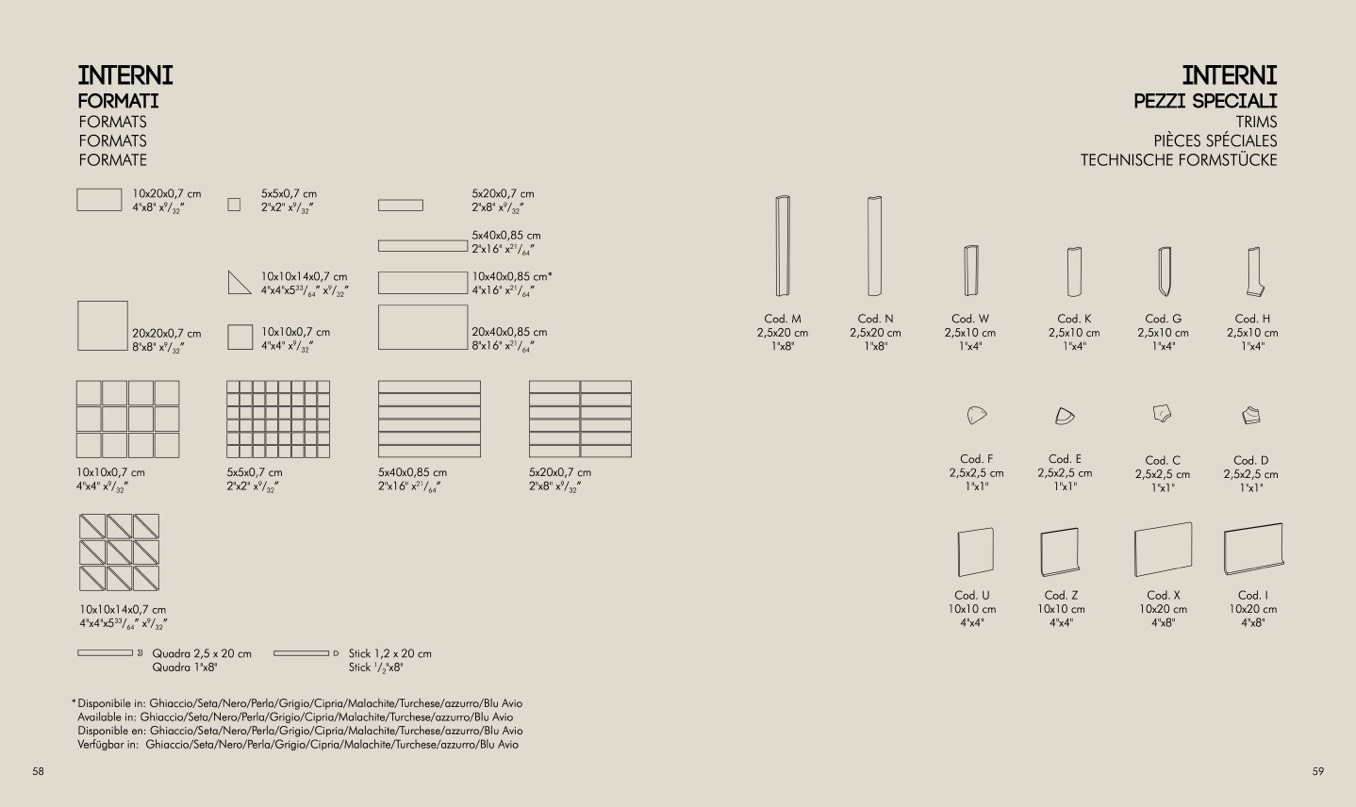 Disponible en: Ghiaccio/Seta/Nero/Perla/Grigio/Cipria/Malachite/Turchese/azzurro/Blu Avio