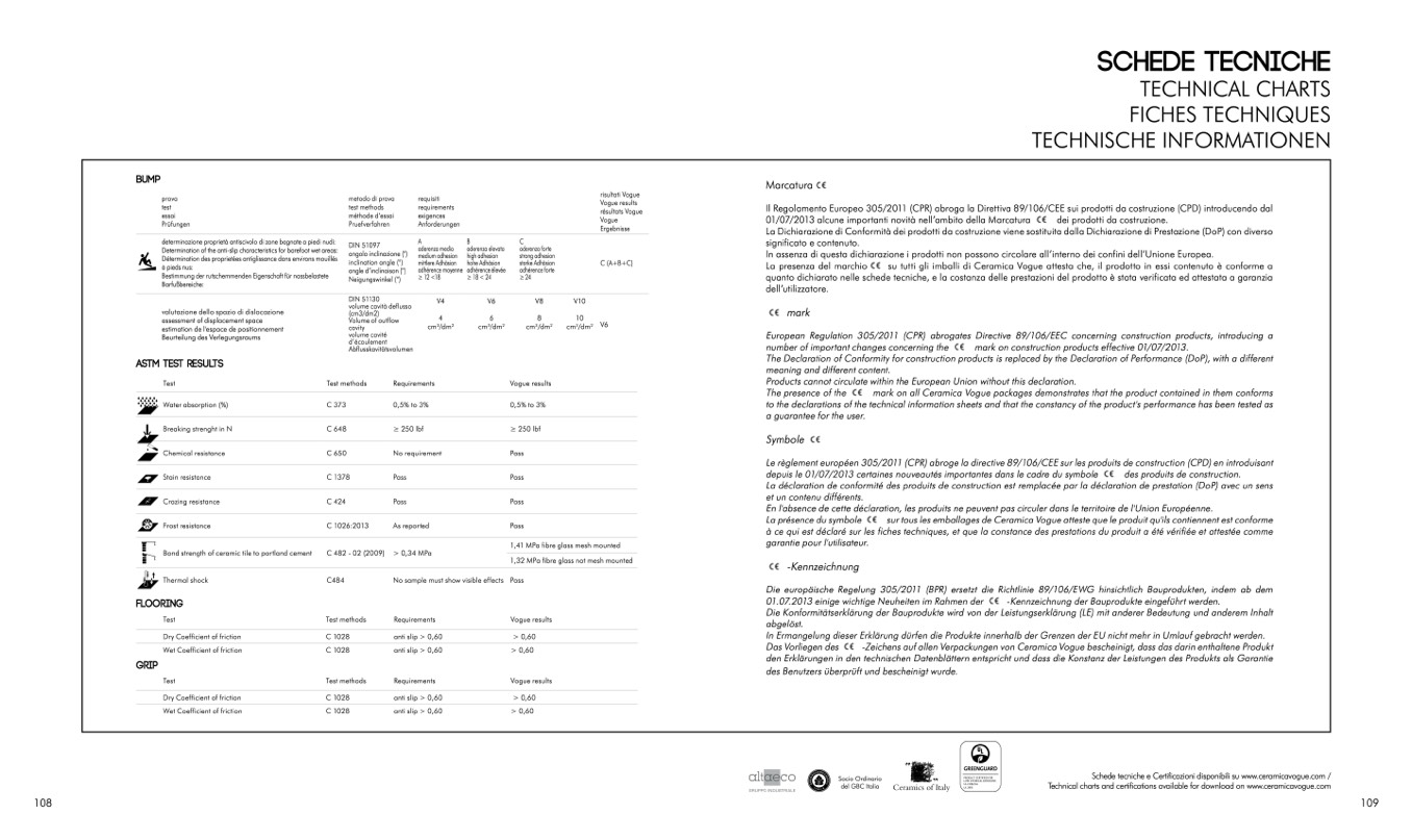 Schede tecniche e Certificazioni disponibili su www.ceramicavogue.com /